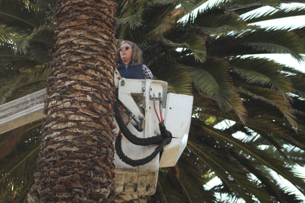 La investigadora indicó que al aplicar el químico amigable con el medio ambiente en la palmera, “que ya se ve más par allá que para acá”, se pretende rescatarla.